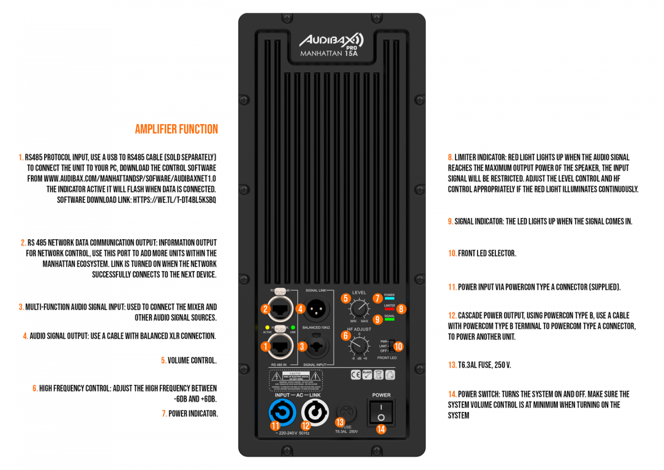 • Réponse en fréquence: 45Hz-20KHz