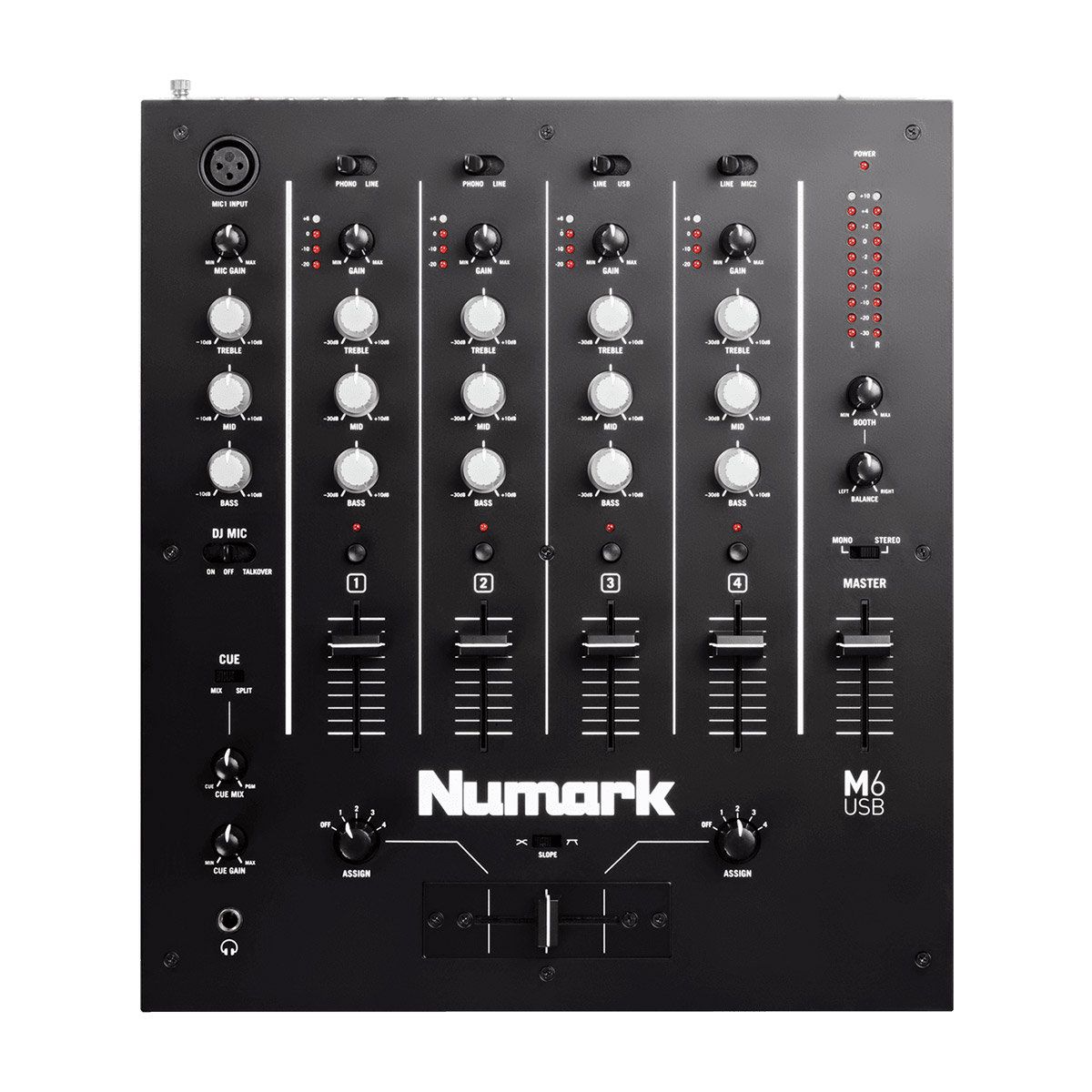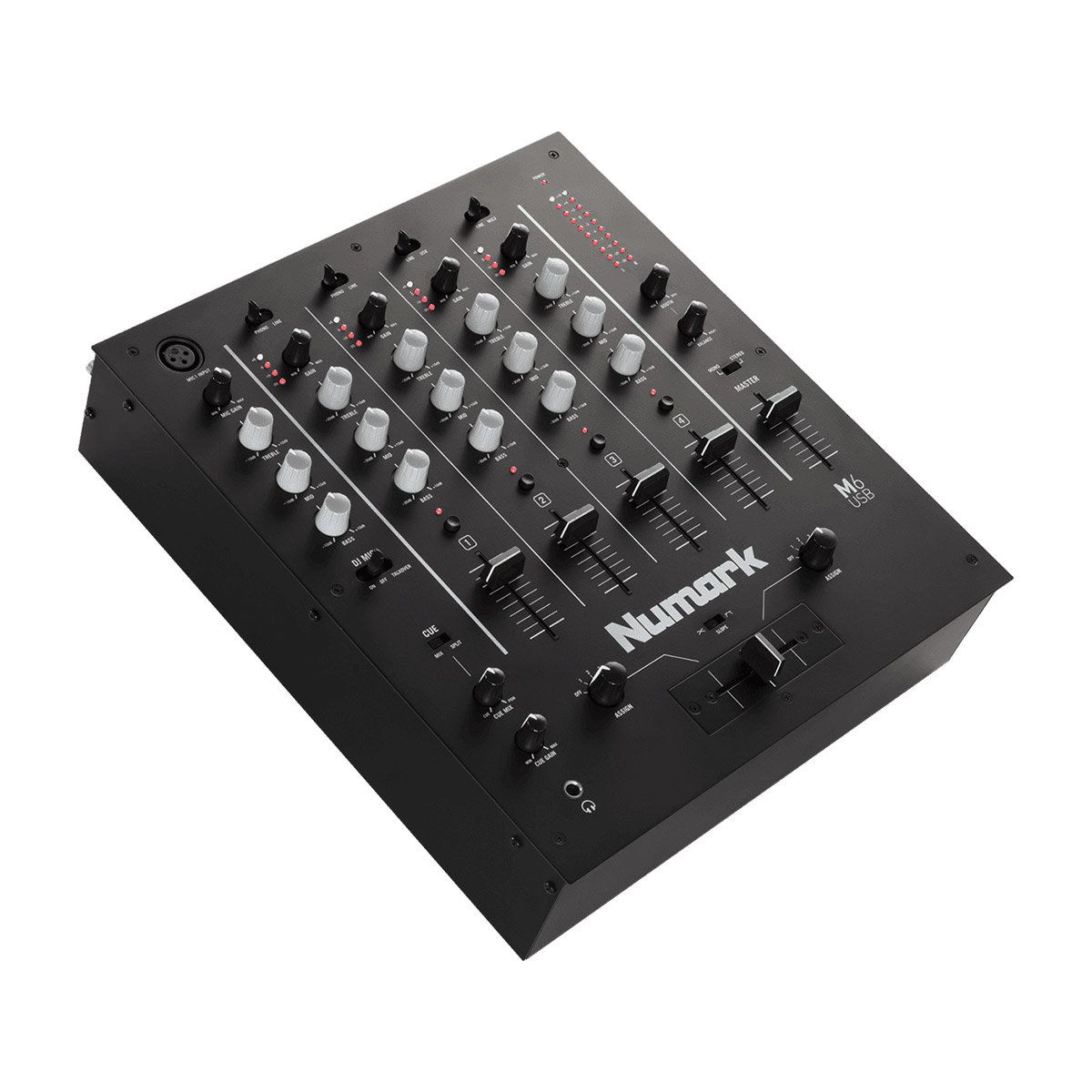 Table de mixage 4 voies doté d’une connexion USB, parfaite pour les DJ plus expérimentés. Gain et EQ 3 bandes avec vumètre LED pour chaque voie.
