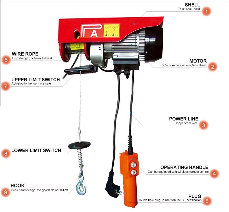 Mini palan électrique à câble métallique modèle PA600 Treuil électrique