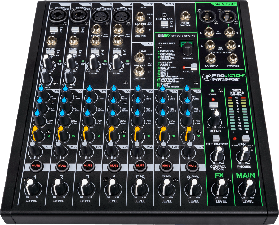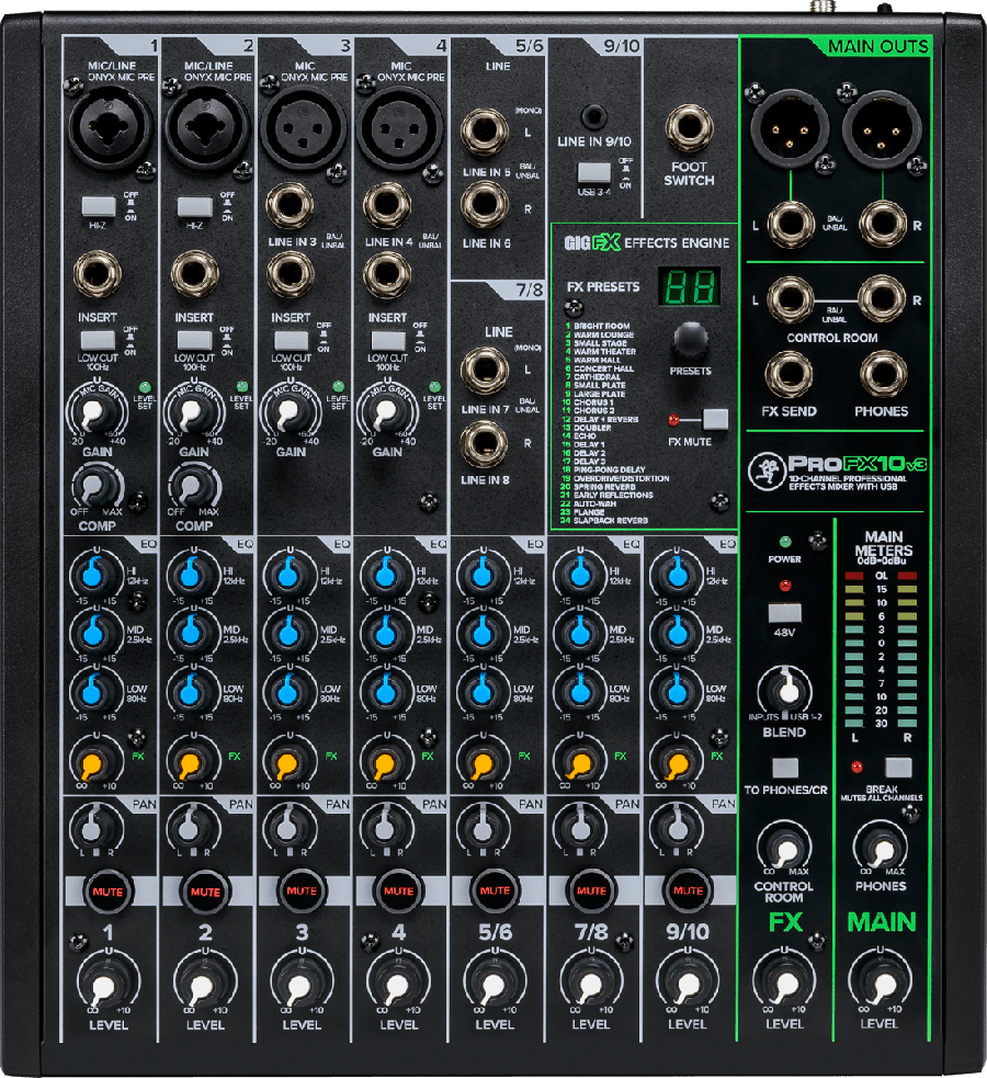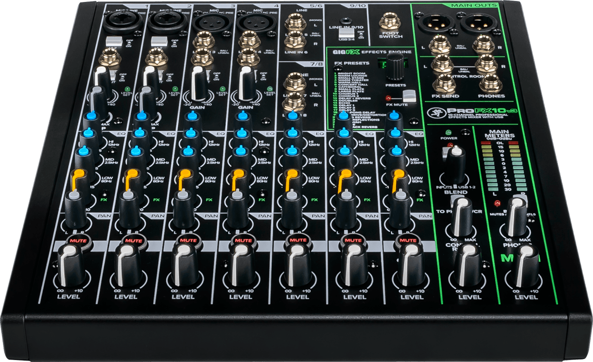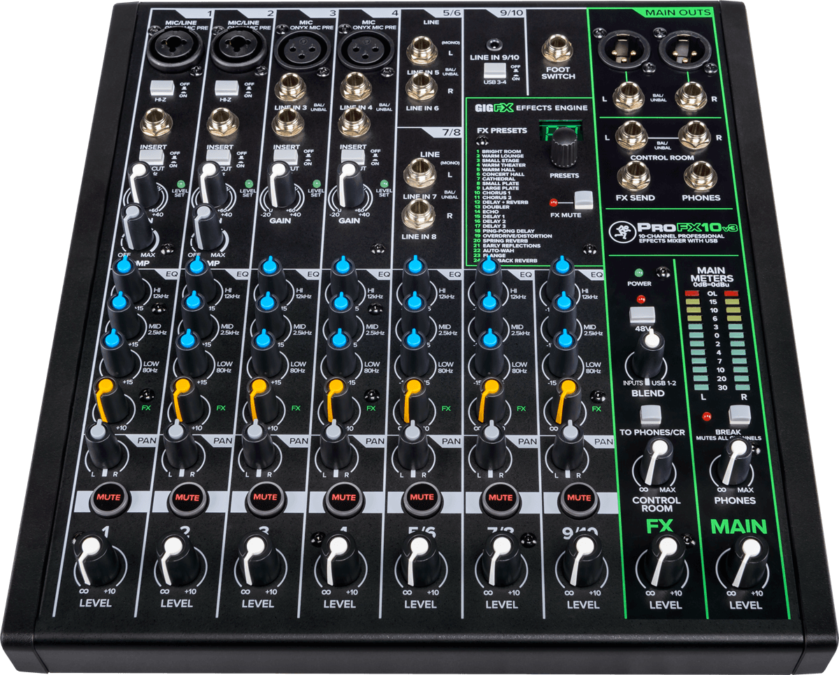 Console de mixage USB 10 canaux avec processeur d'effets. Nouveaux pré-amplis micro Onyx, 24 effets (dont 8 nouveaux), Direct Monitoring, EQ deux bandes, alimentation fantôme +48V et meilleur résolution d'enregistrement. Livrés avec Pro Tools First, 23 plug-ins Pro Tools, Waveform OEM et la collection DAW Essentials comprenant 16 effets plug-ins. Un écran au-dessus pour srie ProFXv3