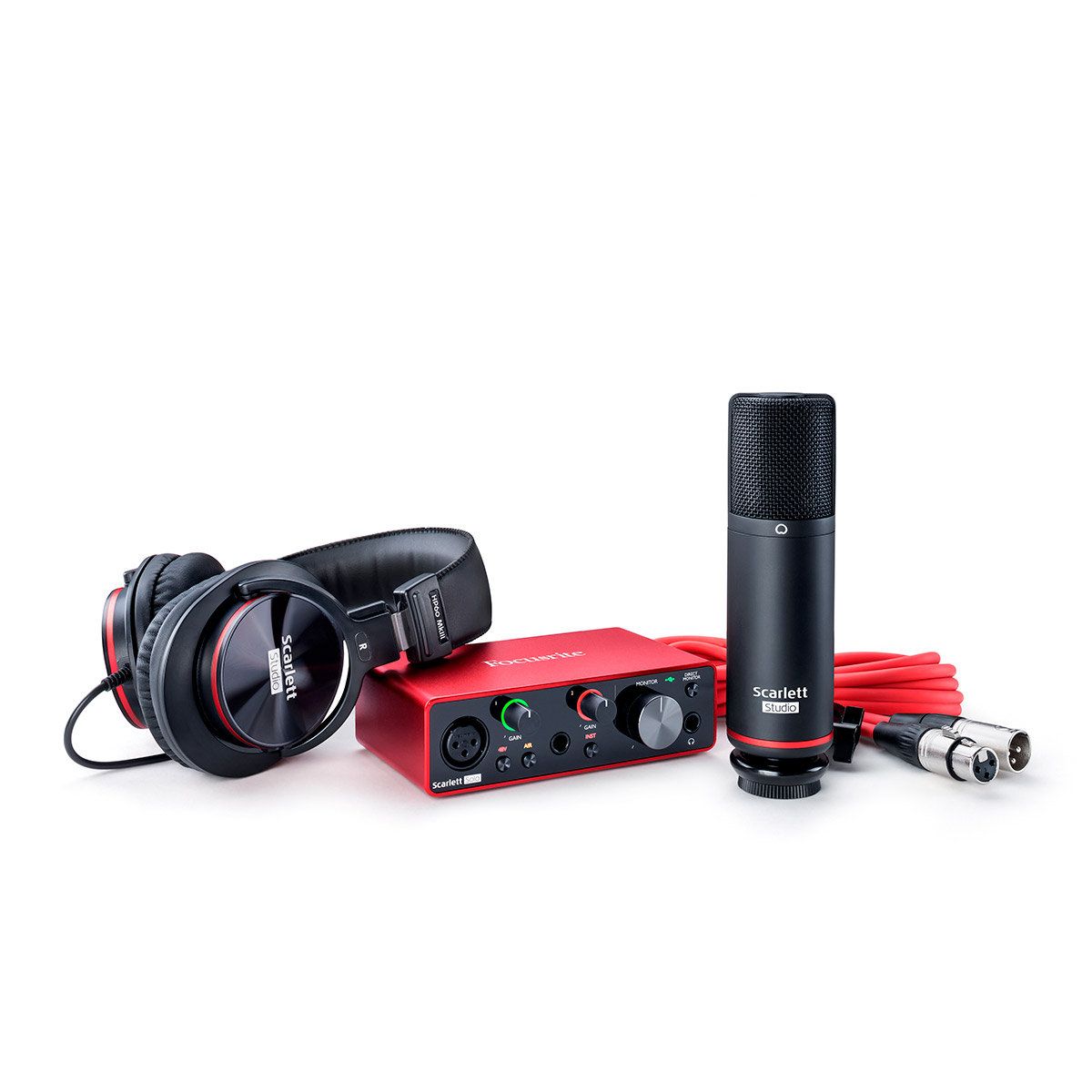 Le Focusrite Scarlett Solo Studio de troisième génération fourni le matériel complet pour équipée votre home studio ! Le pack est composé de l'interface audio USB 2.0 Scarlett Solo G3, d'un micro cardioïde condensateur large diaphragme pour les voix, d'un casque audio fermé pour le monitoring, des câbles nécessaires pour connecter l'ensemble a votre ordinateur Mac ou PC et d'une suite logicielle pour enregistrer vos prochains tubes